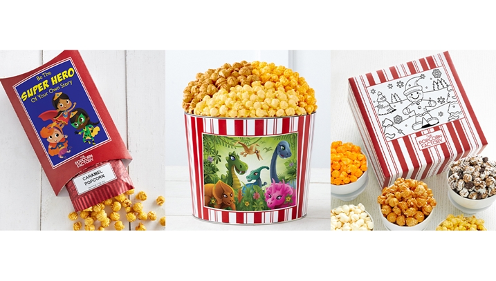 Ranging from $9.99 - $29.99, this collection is for kids of all ages and includes free ground shipping within the continental United States. These distinctive popcorn gifts arrive with the following: